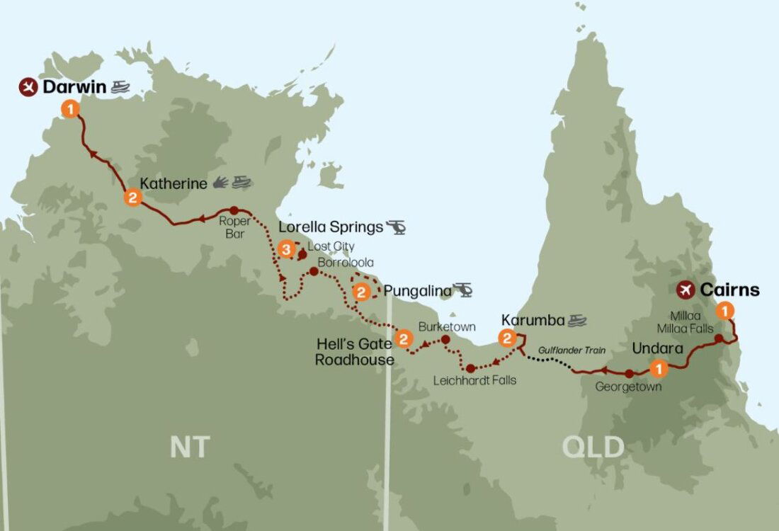This morning we bid farewell to Pungalina-Seven Emu Wildlife Sanctuary and continue east along the Savannah Way, crossing over the NT/QLD border and onto Hell's Gate. Here, we stay in new and modern accommodation with ensuite bathrooms for the next two nights. Stay: Hell's Gate Roadhouse, Hell's Gate, Pungalina (B/L/D)