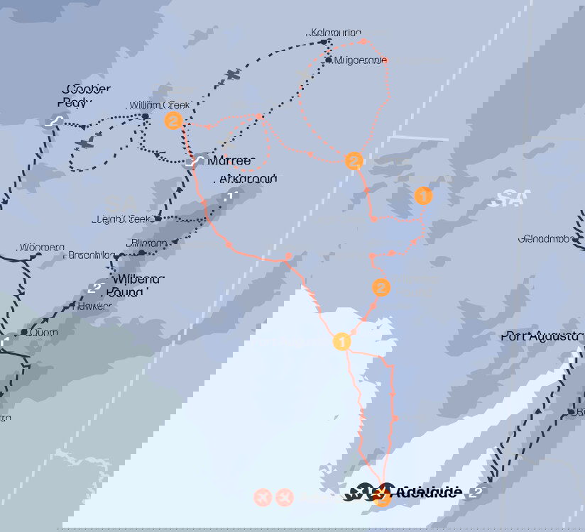 This morning the adventure comes to an end. You'll be transferred to the airport or to your accommodation if staying on in Adelaide. Bon Voyage! (B)