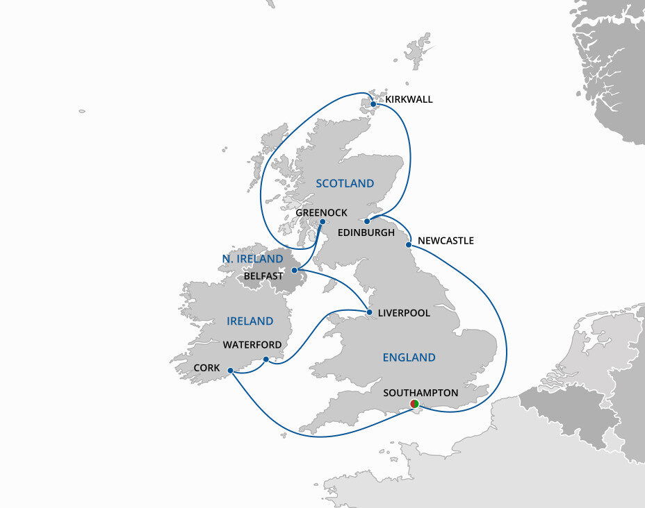 Northern Ireland's capital, Belfast, enjoys a wonderful setting of high hills, sea lough and river valley. Reborn as a cool, modern city, it has successfully left its troubles behind, emerging as a hotbed of culture and architecture, where the comfort of a cosy pub is never far away. Ships will dock in Belfast Harbour.