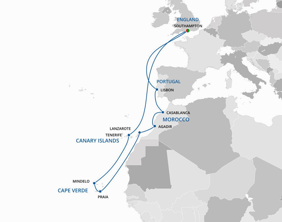 Your cruise is about to begin! It's time to make your way to Southampton, if you haven't already. To reach Southampton from London, you can take a train from London Waterloo to Southampton Central, with the journey taking around 1.5 hours - that's approximately 128 km's (80 miles). Alternatively if you're travelling by coach or have arranged a private transfer, please allow around 2 hours for the journey. Once in Southampton, the cruise terminals are within a short taxi ride from the station.