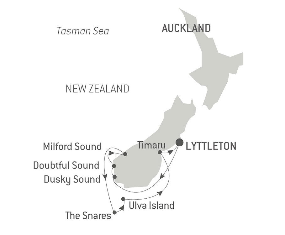 Referred to as the Sound of Silence, there is a secluded serenity that surrounds Doubtful Sound in contrast with the better-known Milford Sound. Lieutenant James Cook named 'Doubtful Harbour' in 1770 as he was uncertain if it was navigable under sail. Doubtful Sound is the deepest of the fiords with a maximum depth of 421 m. It contains three distinct 'arms' and several outstanding waterfalls in the area from Deep Cove to the open ocean. Your ship will spend time navigating around Secretary Island through both Thompson and Doubtful Sounds. You will enjoy the spectacular scenery from the outer decks.