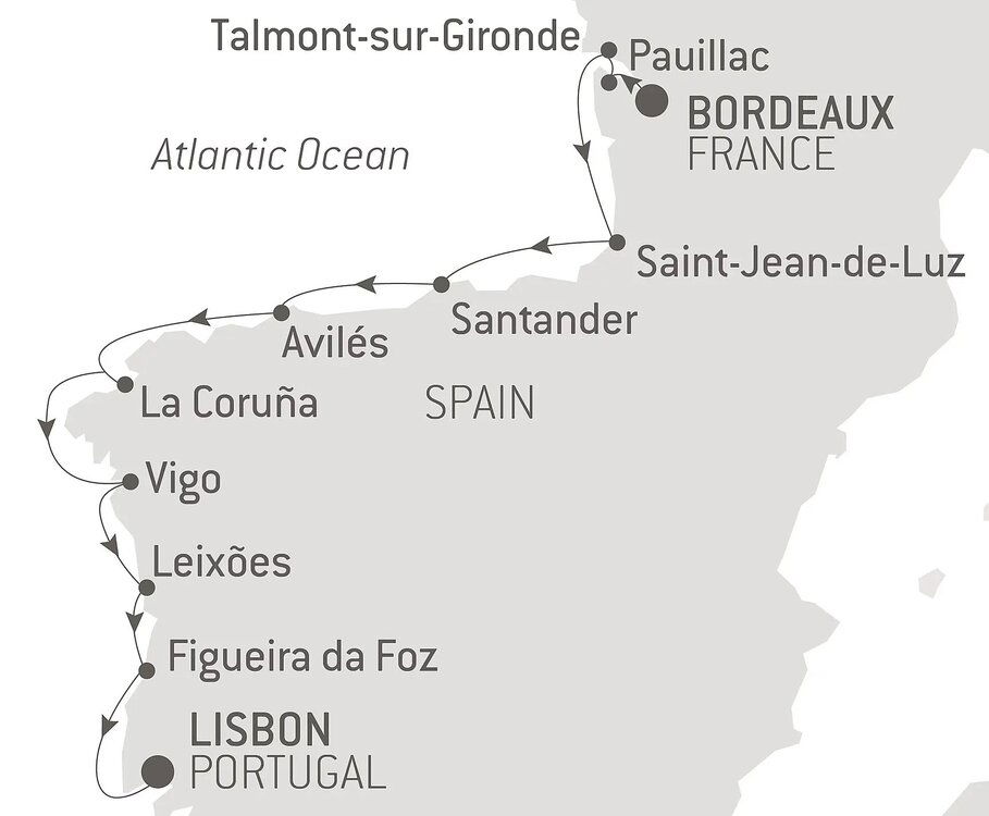 At the mouth of the Rio Douro lies Porto (or Oporto), a city famed for its production of Port, which is still stored and matured in the vast cellars that stretch along the banks of the river. The cities skyline is composed of sky-high bell towers, opulent baroque churches, and majestic beaux art buildings. Ships will dock at the Port of Leixoes.