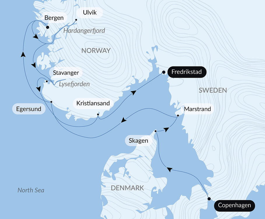 Set on the shores of a sparkling fjord, cosmopolitan Kristiansand is the largest city in Southern Norway. It has a cultural and tranquil atmosphere, a blend of contemporary and traditional architecture, and a natural beauty woven throughout and beyond the city. Ships will dock at the cruise terminal.
