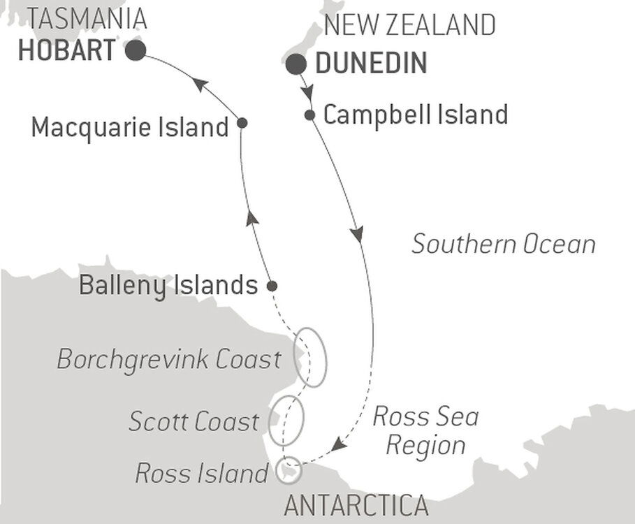 The Balleny Islands are an extremely remote series of islands extending for about 160 kilometres in a northwest-southeast direction straddling the Antarctic Circle some 270 kilometres north of the Antarctic mainland. The volcanic islands are heavily glaciated and have received few human visitors since their discovery in 1839. Their isolated location within the rich waters of the Southern Ocean has resulted in a species diversity rivalling the entire Ross Sea region. Humpback, fin and minke whales are regular visitors to the rich feeding grounds along with Crabeater, Weddell, elephant and leopard seals. Several of the islands are home to significant colonies of Adélie and Chinstrap penguins. If time and weather permit, guests will have the opportunity to explore the spectacular coastal environments and view the prolific wildlife from our fleet of zodiac.