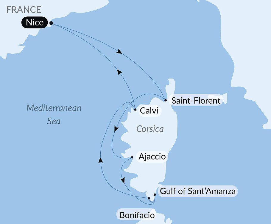 Located on the island of Corsica, Calvi is a beach town with a medieval past. Its cobbled streets climb up to an imposing Genoese Citadel which overlooks a sweeping bay of powdered white sand fringed by maritime pine trees. Ships will anchor offshore and tenders will be proved to Quai Landry.