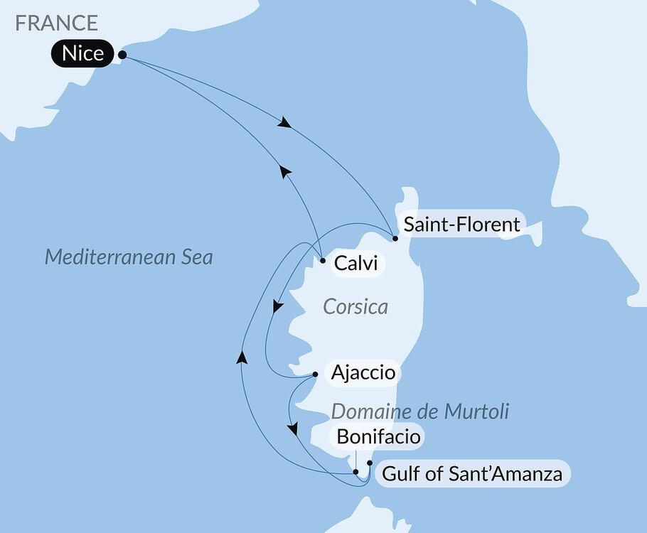 Located on the island of Corsica, Calvi is a beach town with a medieval past. Its cobbled streets climb up to an imposing Genoese Citadel which overlooks a sweeping bay of powdered white sand fringed by maritime pine trees. Ships will anchor offshore and tenders will be proved to Quai Landry.