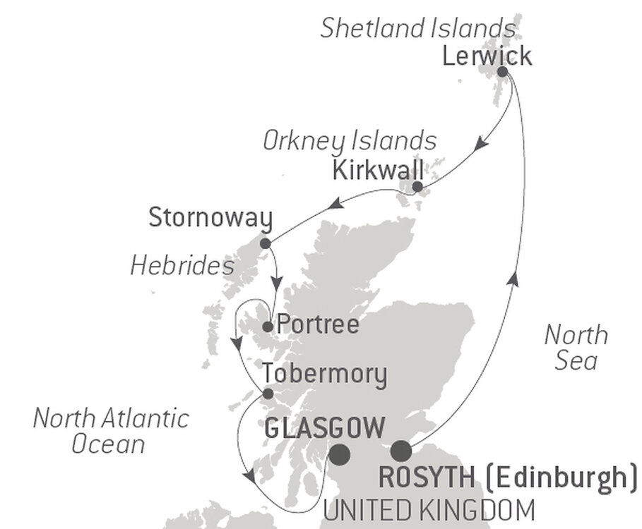 Lerwick, the capital of the Shetland Island Archipelago, offers stone age ruins, heather-covered moors and rugged Scottish highlands. With its dramatic cliffs, Grand Victorian houses, charming Shetland ponies, and Nordic heritage Lerwick allows for hours of entertainment. Smaller ships will dock at the Port of Lerwick, while larger ships will anchor offshore.