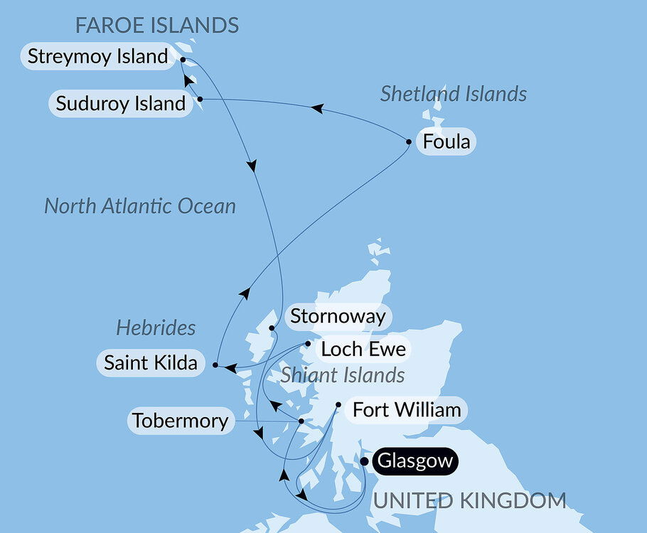Colourful row houses and red-hulled fishing vessels line the shores of this picturesque port set on the edge of the Outer Hebrides. The gateway to Lewis and Harris Island, Stornoway is a short journey to a natural wonderland of mountains, craggy rocks, moorlands, meadows, and rugged coastlines. Ships will anchor offshore and tender guests to shore.
