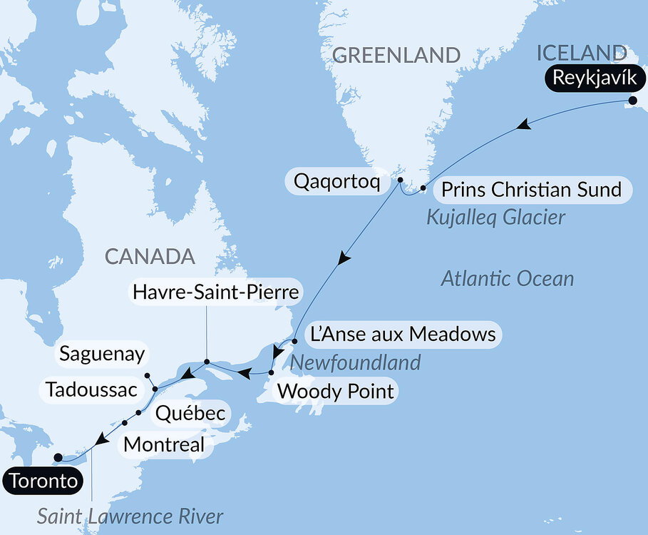 Cruise through the Gulf of St. Lawrence and witness a blend of history and natural beauty. The region boasts historic landmarks like the Gaspé Peninsula, where Jacques Cartier first landed in 1534. The waters are rich with marine life, and the scenic shores are lined with dramatic cliffs and verdant forests, making for a truly memorable voyage.