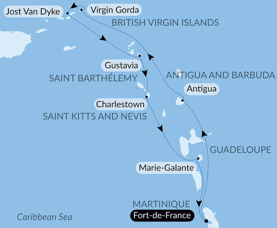 Cherry red roofs, yacht-sprinkled bays and a sophisticated French flavour all add to the gorgeous Caribbean allure of Gustavia. St. Barthelemy's capital rolls around a horseshoe-shaped harbour, where gleaming yachts hover and fancy boutiques, bars and restaurants fizz with life. Ships will anchor offshore and tenders will be provided to the shore.
