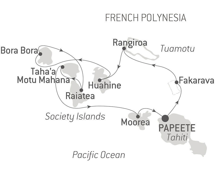 Meaning 'Faraway Heaven,' Raiatea is an island of astounding beauty, ancient myths and home to French Polynesia's largest outdoor temple (marae). Many believe it is the centre from which the great Polynesian migration started and is considered the most sacred island in the South Pacific. Ships will dock at this port.