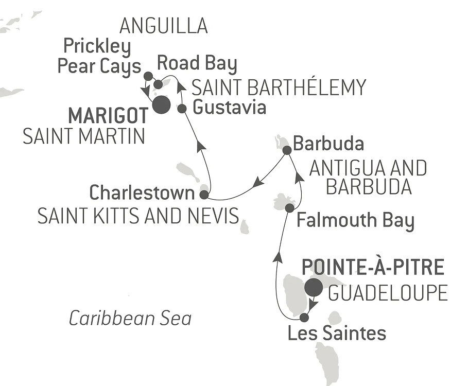 Cherry red roofs, yacht-sprinkled bays and a sophisticated French flavour all add to the gorgeous Caribbean allure of Gustavia. St. Barthelemy's capital rolls around a horseshoe-shaped harbour, where gleaming yachts hover and fancy boutiques, bars and restaurants fizz with life. Ships will anchor offshore and tenders will be provided to the shore.