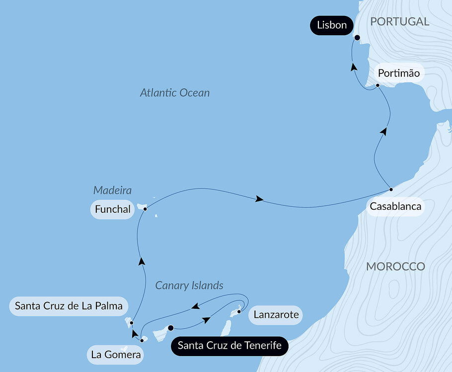 ‘La Isla Bonita,’ La Palma is one of the smaller of the Canary Islands. Its capital, Santa Cruz de la Palma, is a beautiful colonial-style city set on a picturesque harbour. The island’s landscape is one of black sand beaches, mountainous terrain and rich plant life. Ships will dock at the port of Santa Cruz de la Palma.