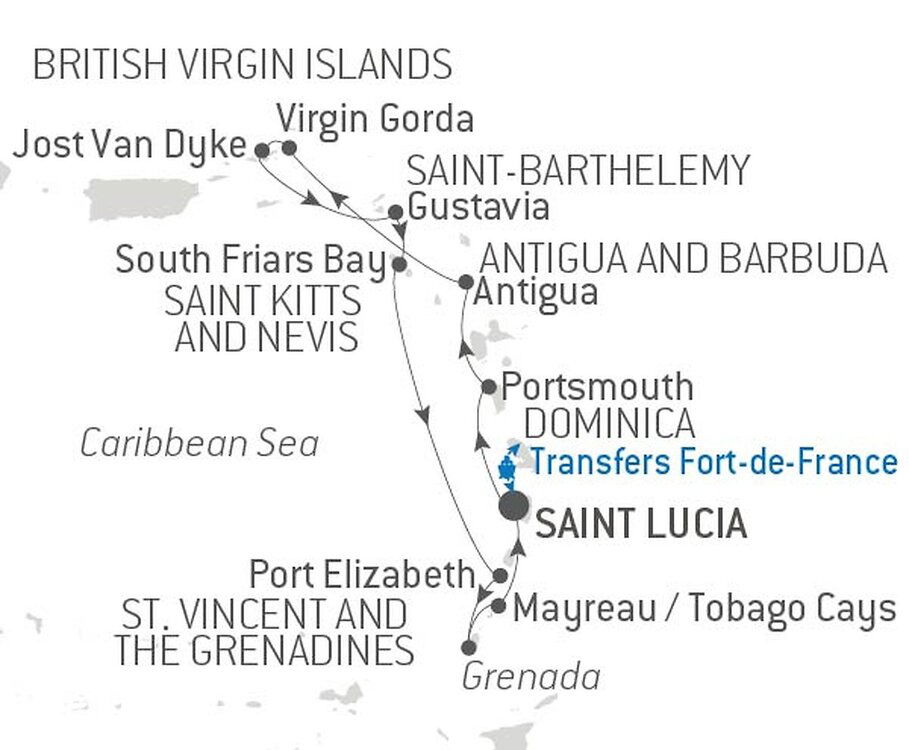 Saint Lucia is the quintessential island paradise, with the majestic peaks of the Pitons, the splendour of lush rainforests, and the blue-green waters of the Caribbean breaking just off shore. Here, the mix of Caribbean, African, English, and French cultures creates an exquisite blend of food, music, and traditions. Enjoy a leisurely morning visiting Sulphur Springs, the world's only drive-in volcano, where you can relax in therapeutic mud baths and hot springs. For a taste of local culture, head to Castries Market, bustling with vendors selling fresh produce, spices, and handmade crafts.