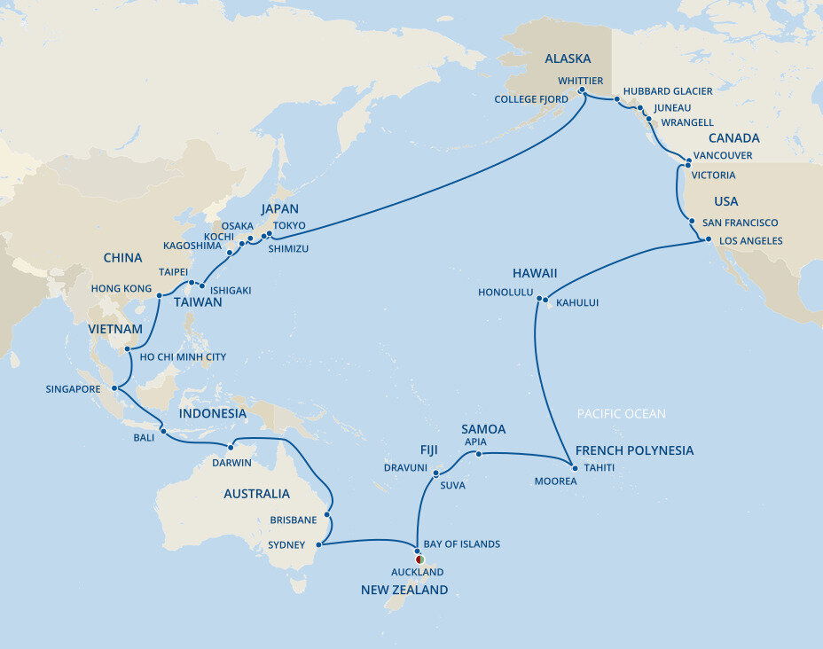 In downtown Auckland you can enjoy world-class dining, shopping, and sights. If you've a mind to explore, visit the island volcano of Rangitoto, or head to Waiheke, known as 'the island of wine' each are within a 40 minute ferry ride of your port.