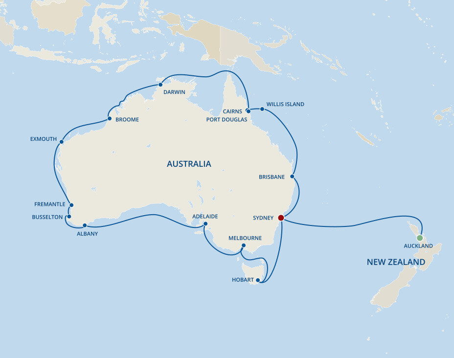 As your ship passes Harbour Heads, you are presented with the shimmering skyline of Sydney - hailed by many seafarers as "the most beautiful harbor in the world." Two prominent landmarks, Harbour Bridge and the sail-like curves of the Sydney Opera House, grace the backdrop of this picturesque harbor. There is a wealth of adventure waiting in Sydney - from its cosmopolitan city center to miles of beautiful beaches and the Blue Mountains.
