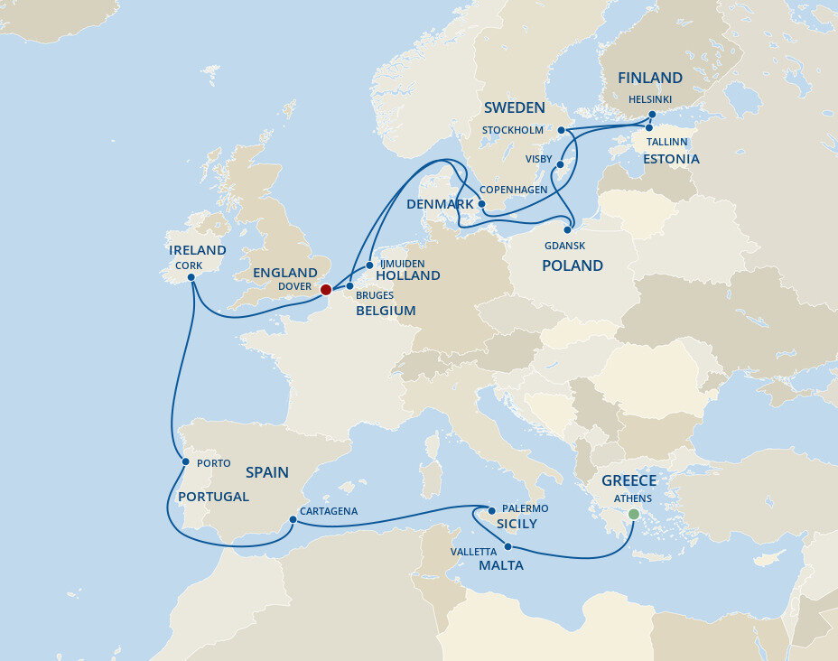 Known as the 'Gateway to England', the southeastern town of Dover is the main transit port between the two sides of the English Channel. This quaint and uniquely British town is famous for its impressive white cliffs, which have inspired many a poet and playwright. Ships will dock at the Dover Cruise Terminal.