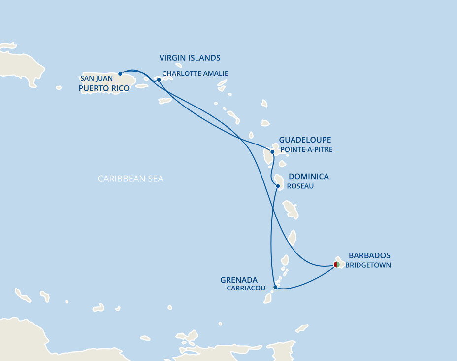 Bridgetown, the captivating capital of Barbados, combines faded colonial history, captivating tradition, and vivid white beaches. Stately colonial buildings intermingle with colourful wooden homes, open-air markets and catch-of-the-day cafés. Ships will dock at this port.