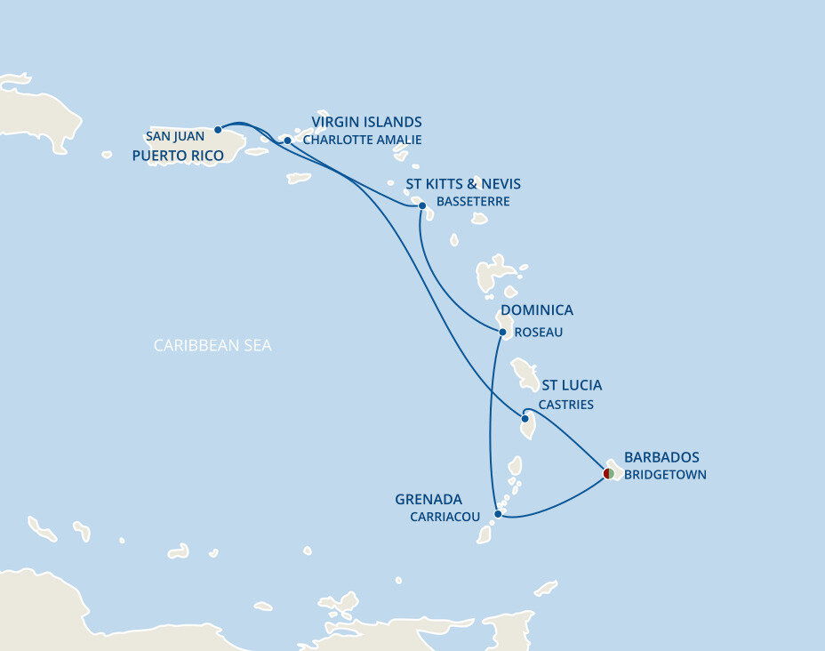 Bridgetown, the captivating capital of Barbados, combines faded colonial history, captivating tradition, and vivid white beaches. Stately colonial buildings intermingle with colourful wooden homes, open-air markets and catch-of-the-day cafés. Ships will dock at this port.