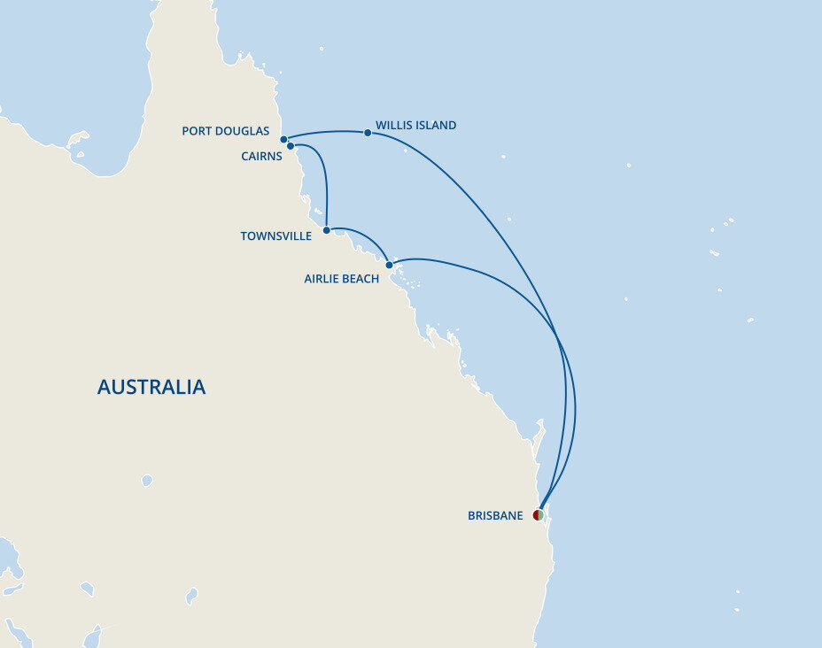 If you're heading home or continuing to explore more of Australia, Brisbane's Portside Cruise Terminal is just 7kms from the domestic and international airport. Brisbane's city centre is just 10-15 mins away if you're planning to explore the city.