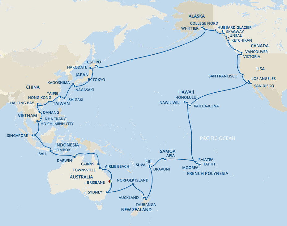 If you're heading home or continuing to explore more of Australia, Brisbane's Portside Cruise Terminal is just 7kms from the domestic and international airport. Brisbane's city centre is just 10-15 mins away if you're planning to explore the city.