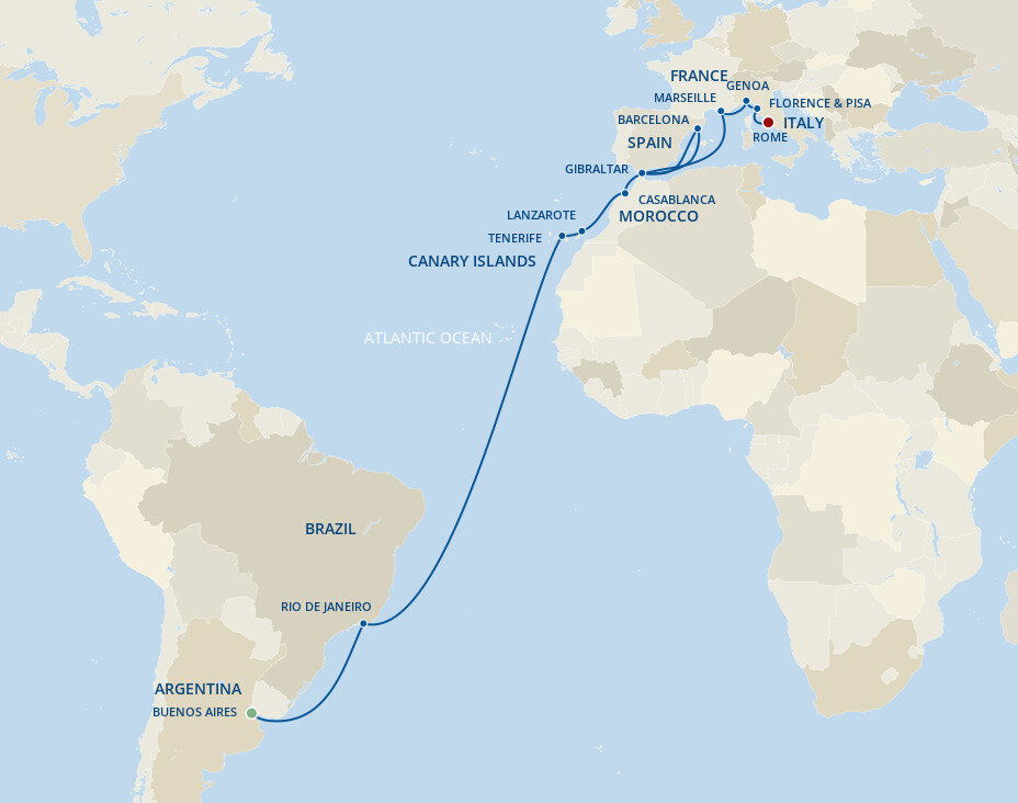 In Rio De Janeiro endless buildings flow around densely-forested mountains that roll down to an evocative waterfront. Incredible natural attractions, spontaneity that transforms everything into a party and world-famous monuments all make this city an unforgettable destination. Ships will dock at Pier Maua.