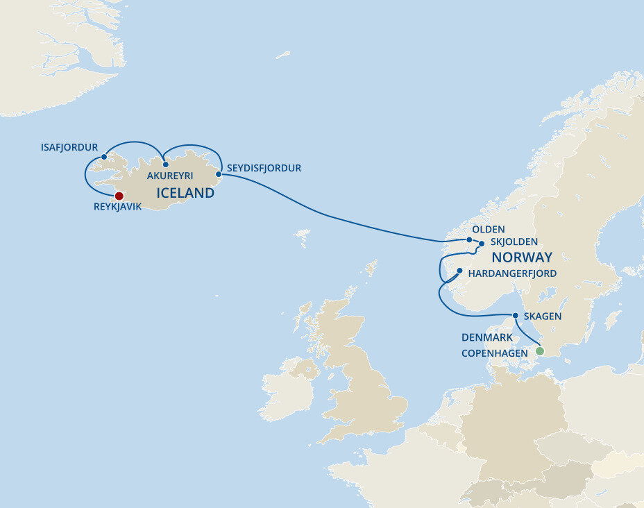 Iceland’s Capital of the North is the gateway to a thrilling land of roaring waterfalls, soaring volcanoes and glorious wildlife. Situated at the head of Eyjafjordur, Iceland's longest fjord and with a backdrop of dramatic snow-covered mountains, Akureyri is Iceland's second largest city. Ships will dock at the pier.