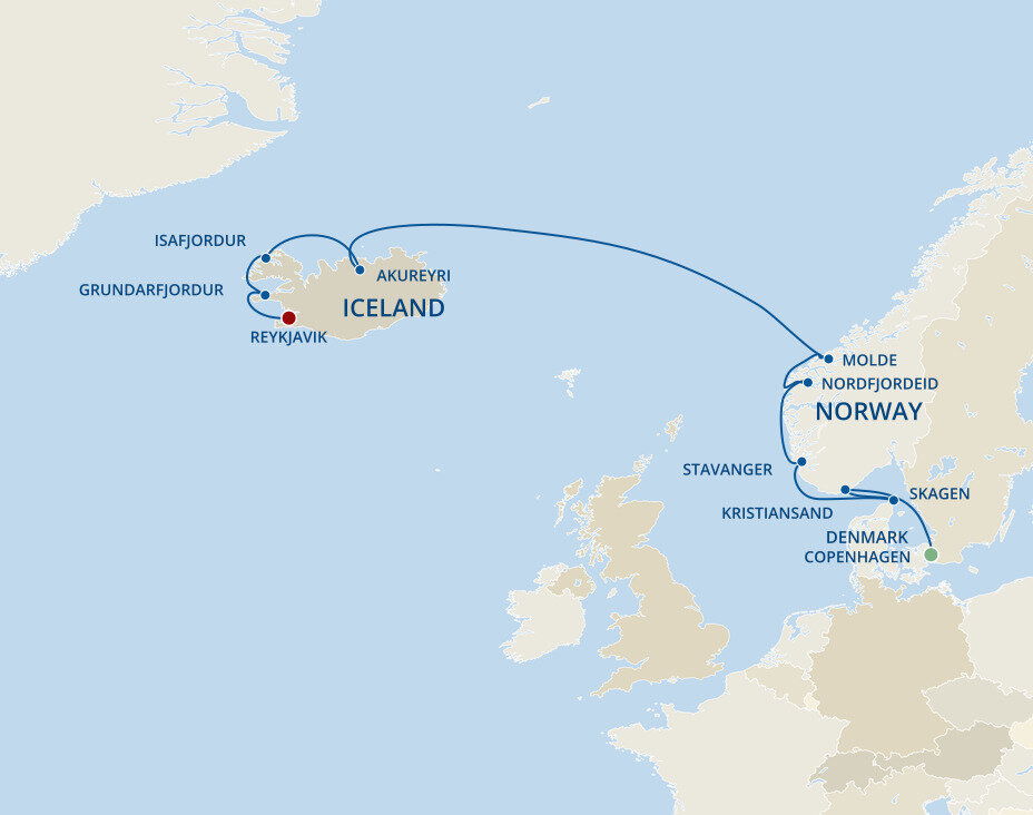 Grundarfjordur is a picturesque town situated on the fjord of Beidafjordur on the Snaefellsnes Peninsula. This charming fishing village is located right next to Kirkjufell mountain, the most photographed mountain in Iceland. Ships will dock at the Port of Grundarfjordur.