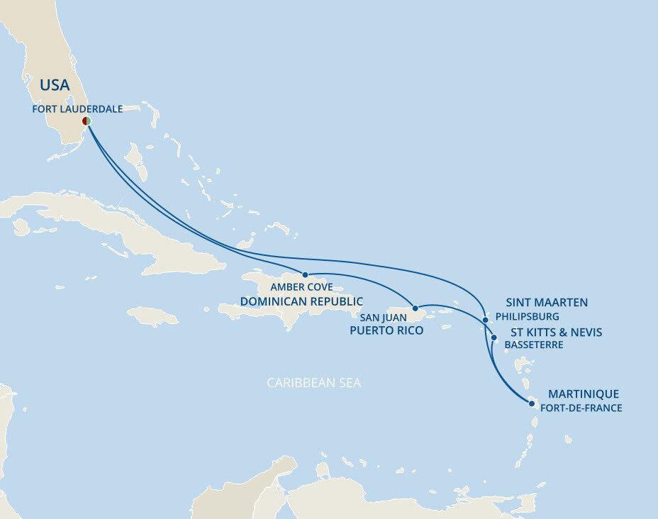 Fort-de-France, located on Martinique is the largest city in the French West Indies and it has personality to match. Life here is vibrant and fast-paced, and the culture is as colourful as the brightly painted shops that line the city’s cobblestone streets. Ships will dock at the port.