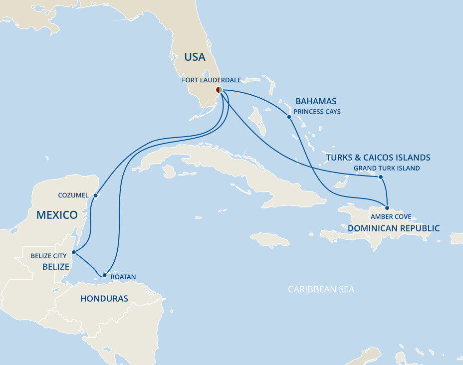 Princess Cays is an exclusive port of call to Princess cruises. This private resort is situated on more than 40 acres and features over a half-mile of white-sand shoreline, all at the southern tip of Eleuthera island. Ships will anchor offshore and tenders are provided to the shore.
