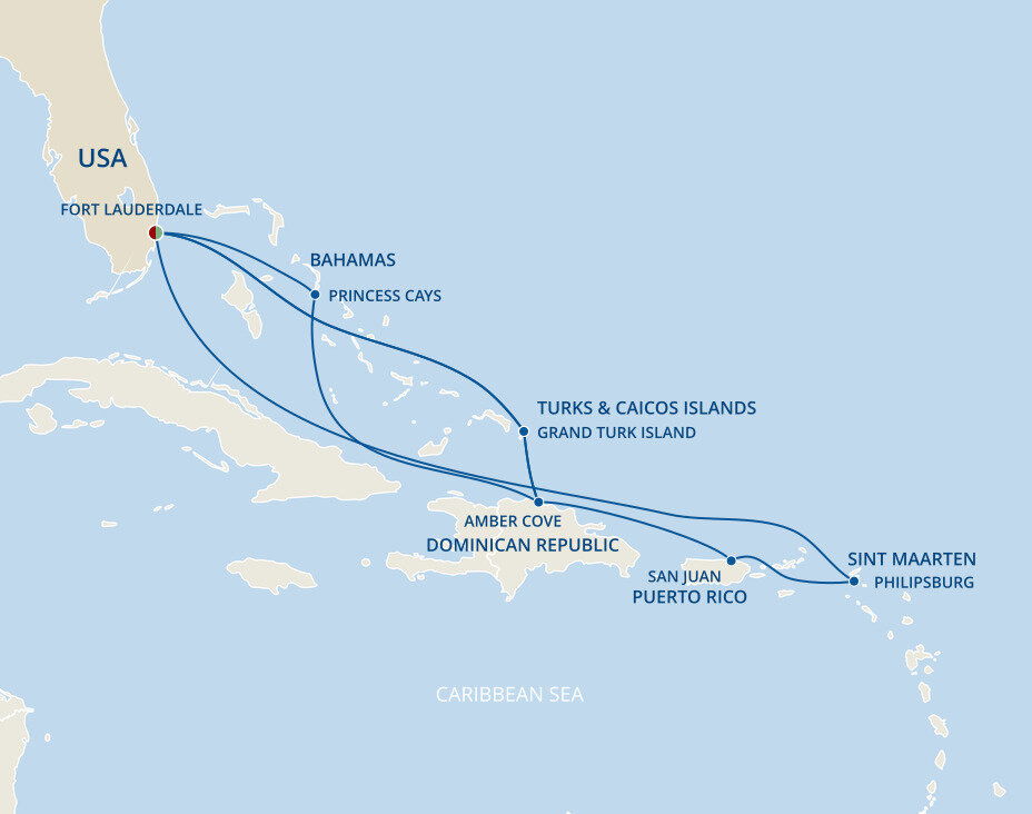 Princess Cays is an exclusive port of call to Princess cruises. This private resort is situated on more than 40 acres and features over a half-mile of white-sand shoreline, all at the southern tip of Eleuthera island. Ships will anchor offshore and tenders are provided to the shore.