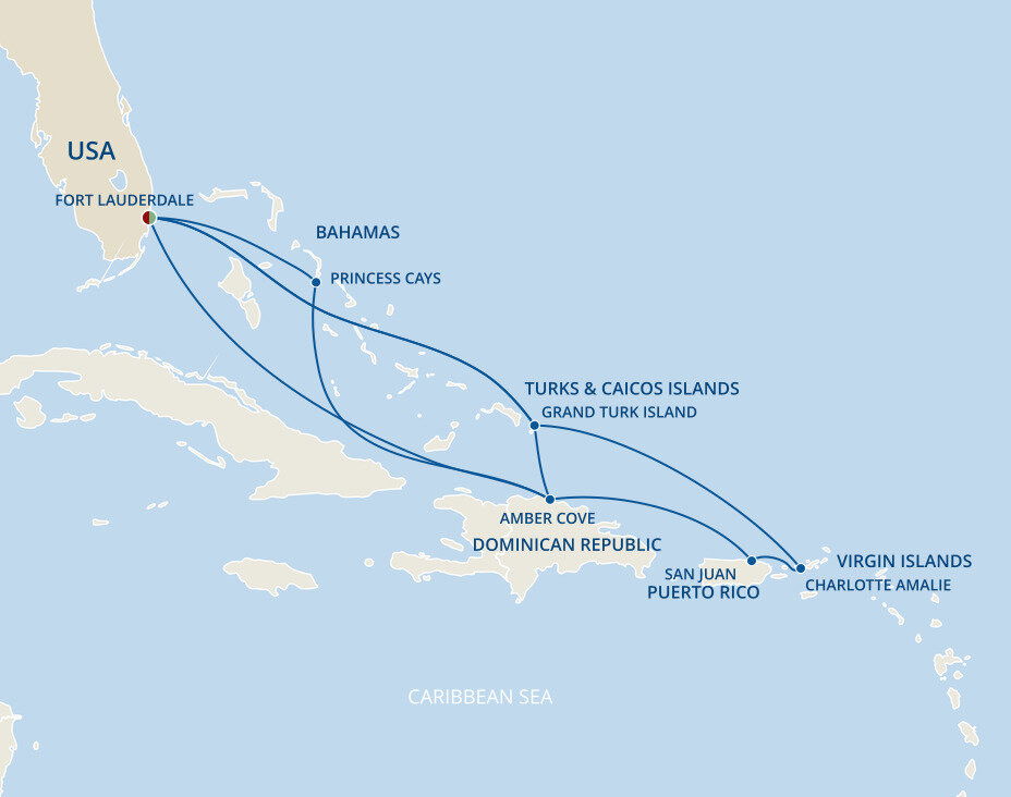 Princess Cays is an exclusive port of call to Princess cruises. This private resort is situated on more than 40 acres and features over a half-mile of white-sand shoreline, all at the southern tip of Eleuthera island. Ships will anchor offshore and tenders are provided to the shore.