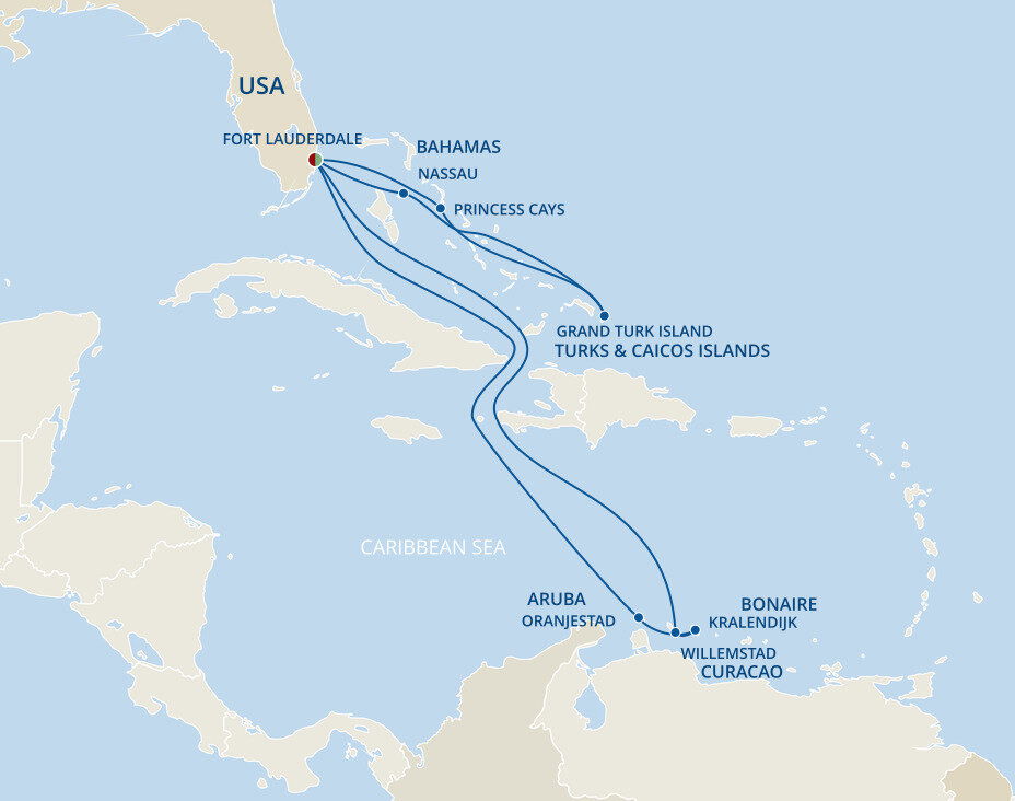 Princess Cays is an exclusive port of call to Princess cruises. This private resort is situated on more than 40 acres and features over a half-mile of white-sand shoreline, all at the southern tip of Eleuthera island. Ships will anchor offshore and tenders are provided to the shore.
