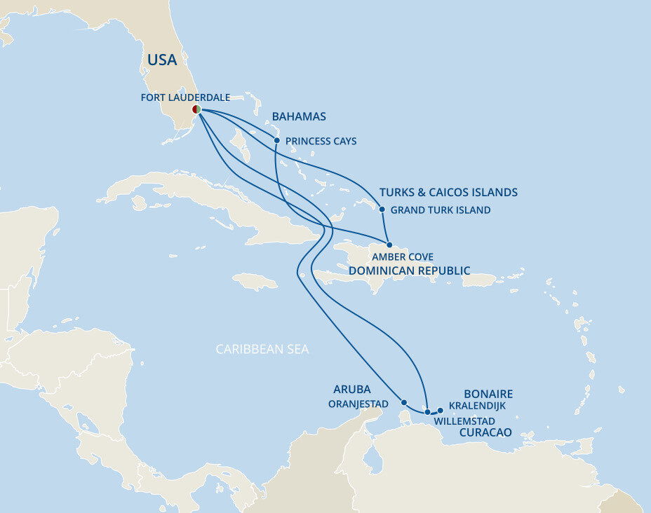 Princess Cays is an exclusive port of call to Princess cruises. This private resort is situated on more than 40 acres and features over a half-mile of white-sand shoreline, all at the southern tip of Eleuthera island. Ships will anchor offshore and tenders are provided to the shore.