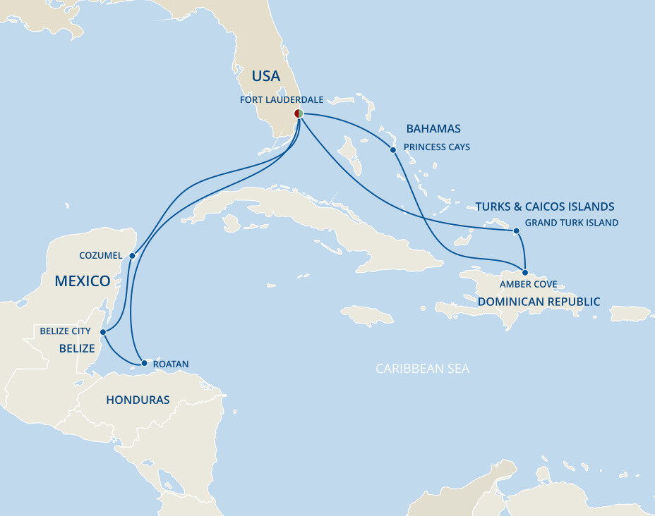 Princess Cays is an exclusive port of call to Princess cruises. This private resort is situated on more than 40 acres and features over a half-mile of white-sand shoreline, all at the southern tip of Eleuthera island. Ships will anchor offshore and tenders are provided to the shore.