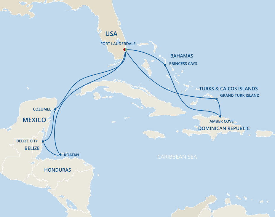 Princess Cays is an exclusive port of call to Princess cruises. This private resort is situated on more than 40 acres and features over a half-mile of white-sand shoreline, all at the southern tip of Eleuthera island. Ships will anchor offshore and tenders are provided to the shore.