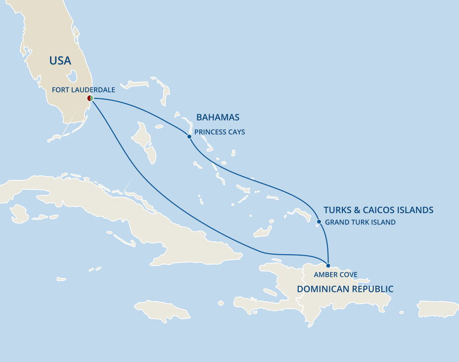 Princess Cays is an exclusive port of call to Princess cruises. This private resort is situated on more than 40 acres and features over a half-mile of white-sand shoreline, all at the southern tip of Eleuthera island. Ships will anchor offshore and tenders are provided to the shore.