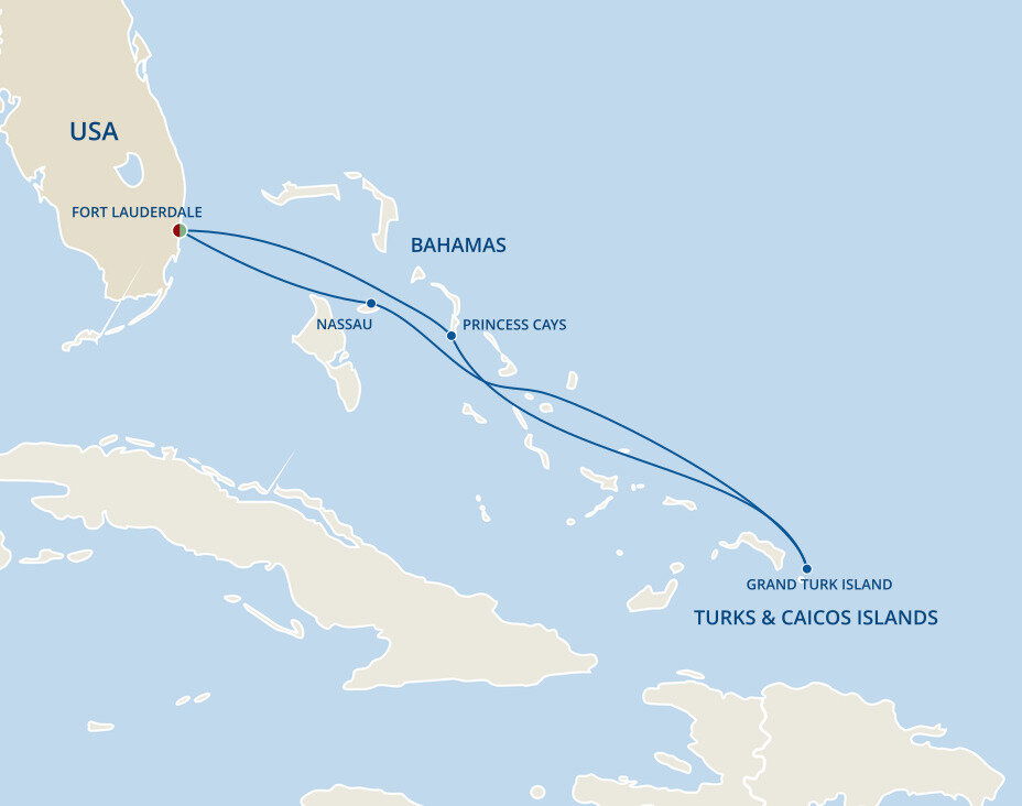 Princess Cays is an exclusive port of call to Princess cruises. This private resort is situated on more than 40 acres and features over a half-mile of white-sand shoreline, all at the southern tip of Eleuthera island. Ships will anchor offshore and tenders are provided to the shore.