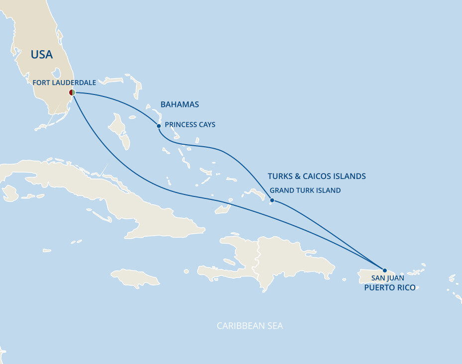 Princess Cays is an exclusive port of call to Princess cruises. This private resort is situated on more than 40 acres and features over a half-mile of white-sand shoreline, all at the southern tip of Eleuthera island. Ships will anchor offshore and tenders are provided to the shore.