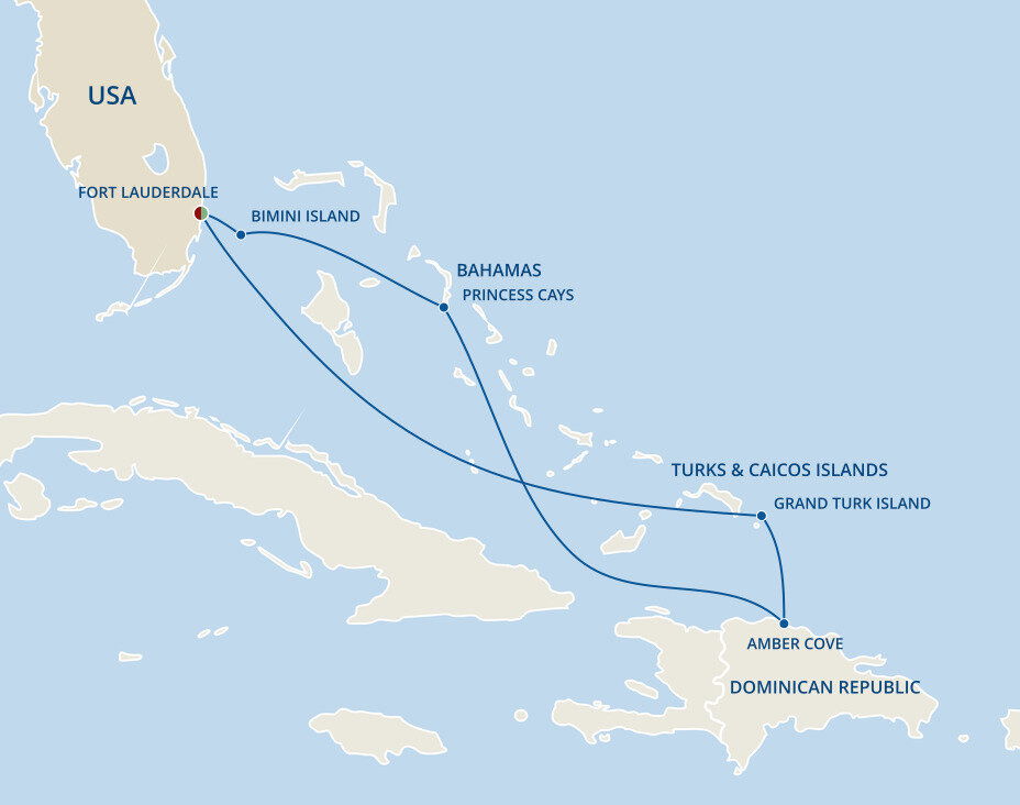Princess Cays is an exclusive port of call to Princess cruises. This private resort is situated on more than 40 acres and features over a half-mile of white-sand shoreline, all at the southern tip of Eleuthera island. Ships will anchor offshore and tenders are provided to the shore.