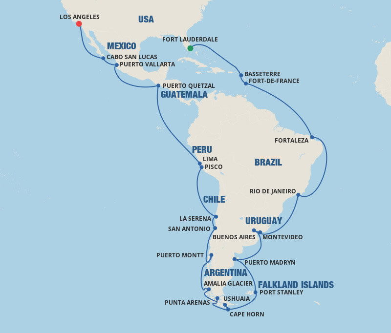 Located at the southernmost end of South America, Ushuaia is is often called a doorway to Antarctica. The town boasts incredible natural beauty through its national parks like the Tierra del Fuego National Park with cultural institutions like the Museo del Fin del Mundo, or the End of the World Museum. Ships will dock at this port.