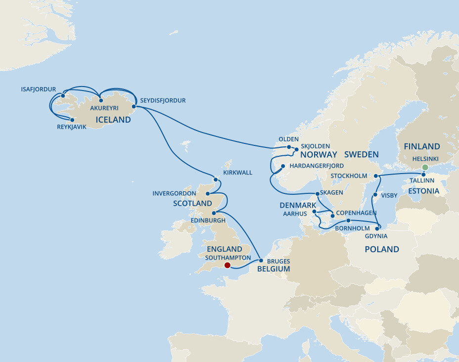 The iconic Little Mermaid statue sits serenely by the waterfront, while Tivoli Gardens, one of the world’s oldest amusement parks, offers charming rides and lush gardens in the heart of the city. Your ship will dock at the Port of Copenhagen, which is a 30 minute drive to Copenhagen Airport and a 15 minute drive into the city centre.