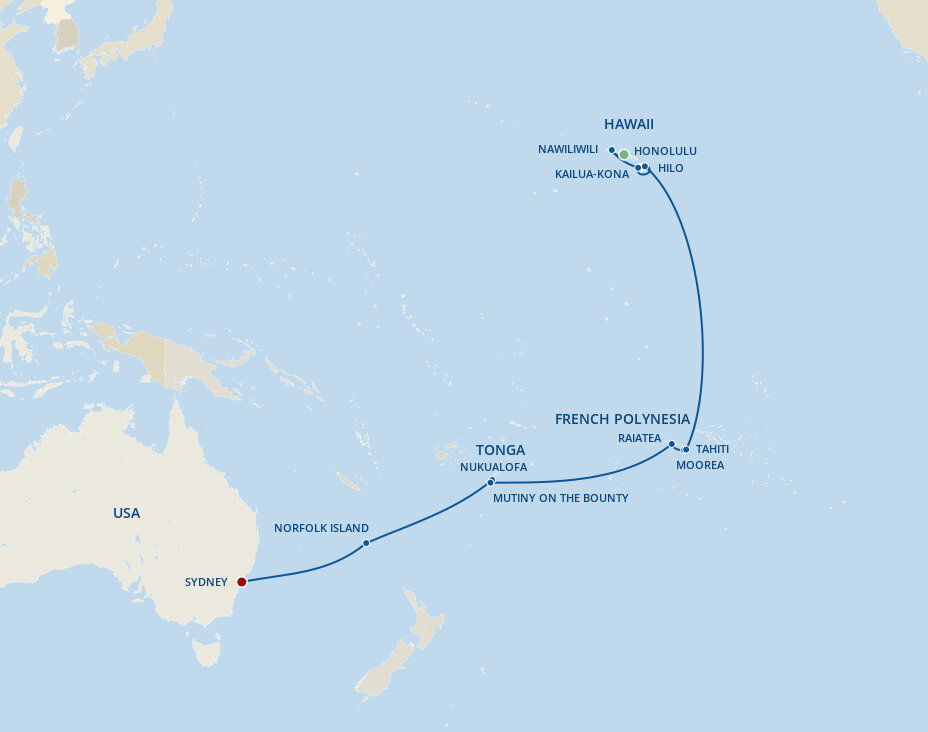 The island's unique geography makes Moorea one of French Polynesia's most breathtaking islands. Eight mountain peaks carpeted in lush vegetation rise from a translucent lagoon and two tranquil bays. Ships will anchor offshore and tenders will be provided to the shore.
