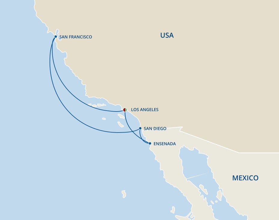 Cruise lines embark to destinations such as the Mexican Riviera, Hawaii, the California Coast and the Panama Canal.