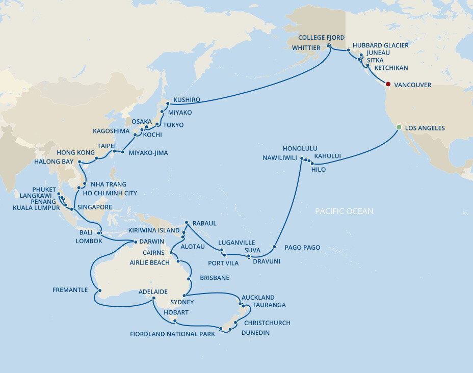 In downtown Auckland you can enjoy world-class dining, shopping, and sights. If you've a mind to explore, visit the island volcano of Rangitoto, or head to Waiheke, known as 'the island of wine' each are within a 40 minute ferry ride of your port.