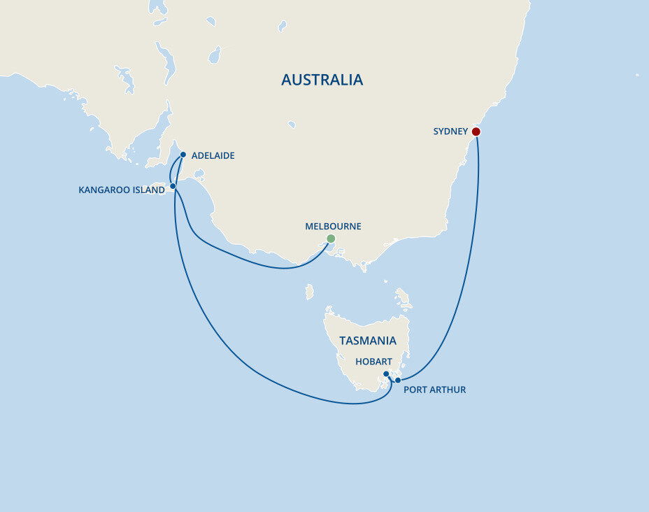 Kangaroo Island is home to dramatic coastal cliffs, lush eucalyptus forests, rolling green hills and gorgeous beaches. It is a wildlife sanctuary where you get the unique opportunity to see an amazing range of animals up-close in their local habitat. Ships will anchor offshore and tenders will be provided to the pier.