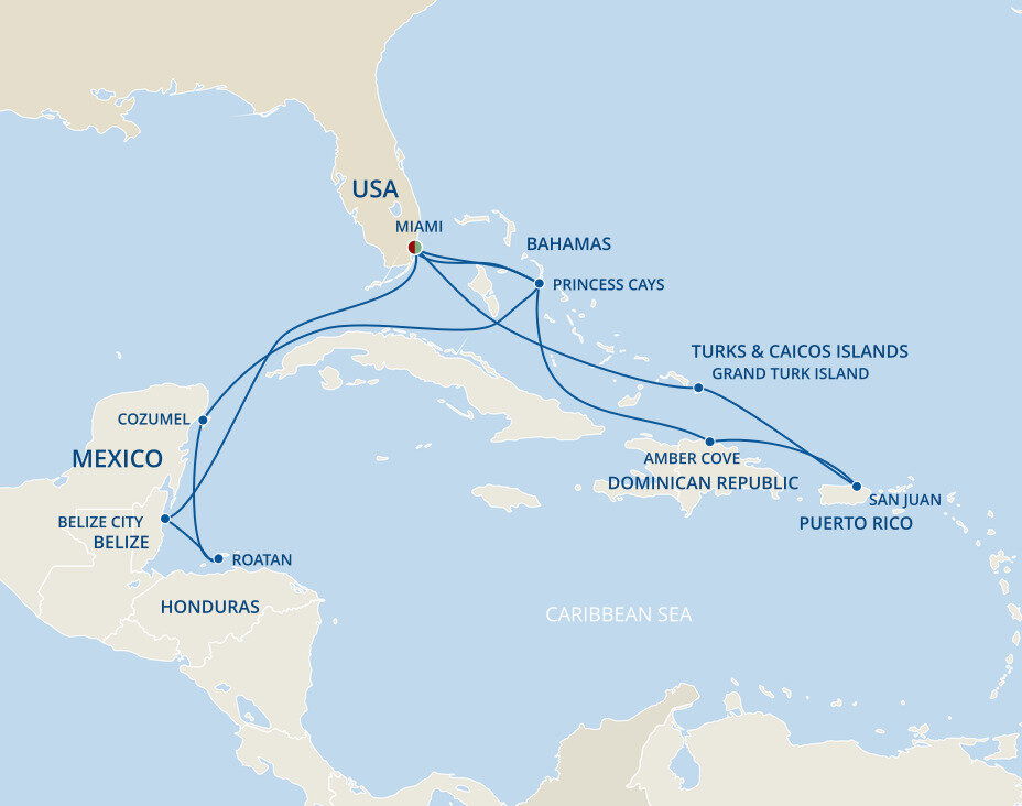 This multicultural city where the sun rules supreme is more than just a cruise port. Visitors from all over the world enjoy Miami’s famous Art Deco buildings, family-friendly zoos and romantic palm tree-lined streets filled with fantastic restaurants. Don’t forget about the white sandy beaches and year-round warm weather, perfect for relaxing before or after your Caribbean cruise from Miami.