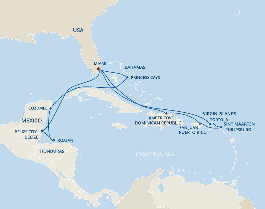 This multicultural city where the sun rules supreme is more than just a cruise port. Visitors from all over the world enjoy Miami’s famous Art Deco buildings, family-friendly zoos and romantic palm tree-lined streets filled with fantastic restaurants. Don’t forget about the white sandy beaches and year-round warm weather, perfect for relaxing before or after your Caribbean cruise from Miami.