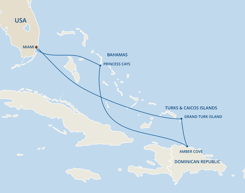 Princess Cays is an exclusive port of call to Princess cruises. This private resort is situated on more than 40 acres and features over a half-mile of white-sand shoreline, all at the southern tip of Eleuthera island. Ships will anchor offshore and tenders are provided to the shore.