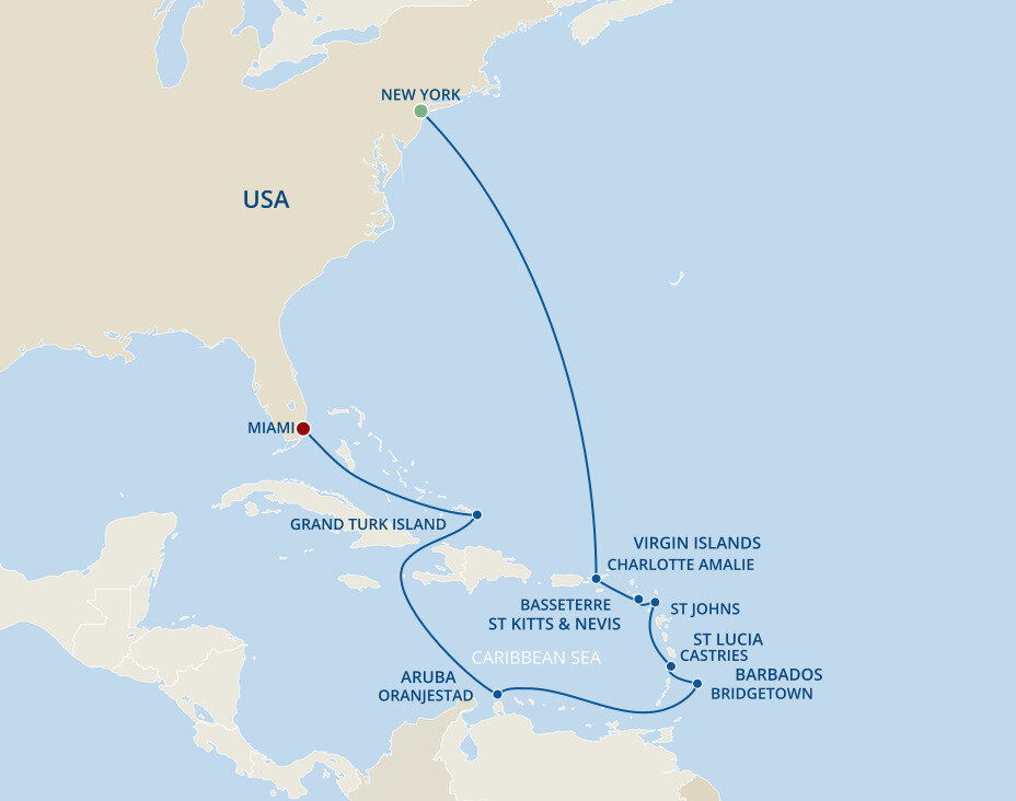 Beach masterpieces of silky white sand and sparkling water shifting from turquoise to royal blue welcome you to idyllic Grand Turk. The capital of the Turks and Caicos Islands is a small island bursting with turn-of-the-century charm, retaining the look and feel of the Caribbean 40 years ago. Ships will dock at the Grand Turk Cruise Centre.